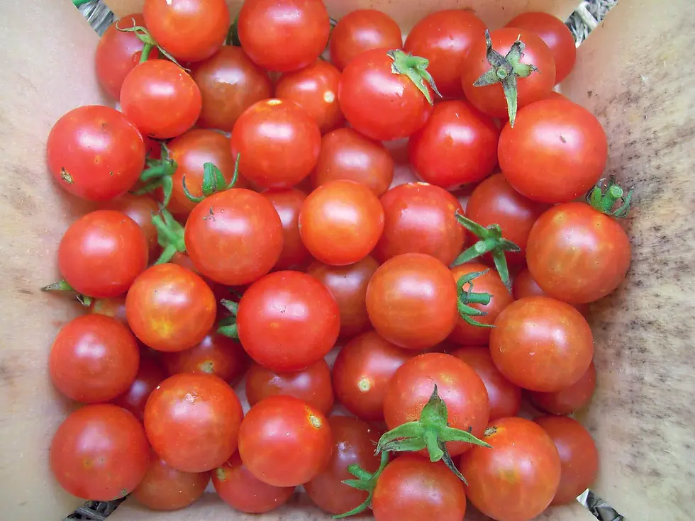 Salad Tomatoes: including currant, cherry, grape, and pear types, produce small, bite-sized fruits. These small-fruited varieties develop large, sprawling plants that grow and produce fruits even under hot, dry conditions. Common varieties include Sugar Cherry, Amy's Apricot Mix, Black Plum.